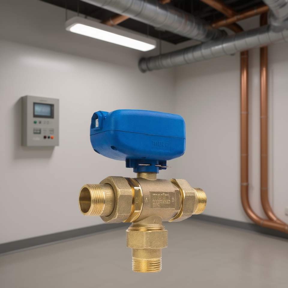 Vanne à trois voies Mut 1'' 1/2 230V pour systèmes HVAC domestiques Série TMO XL 703002923 sans raccords F-F-F et avec relais
