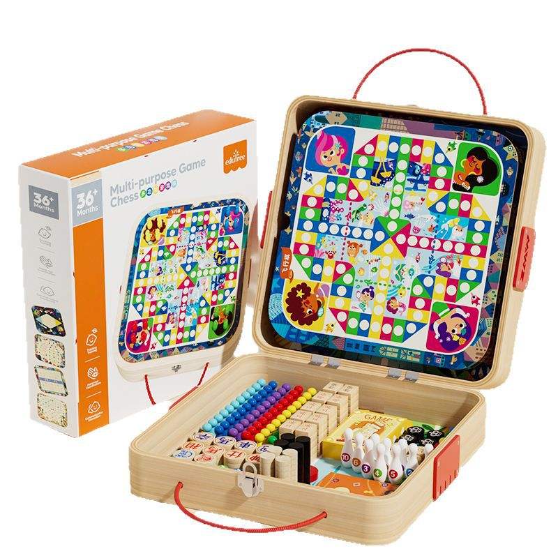 Échiquier multifonctionnel en bois Muwanzi 59 en 1, jeux éducatifs pour enfants de 4 à 6 ans