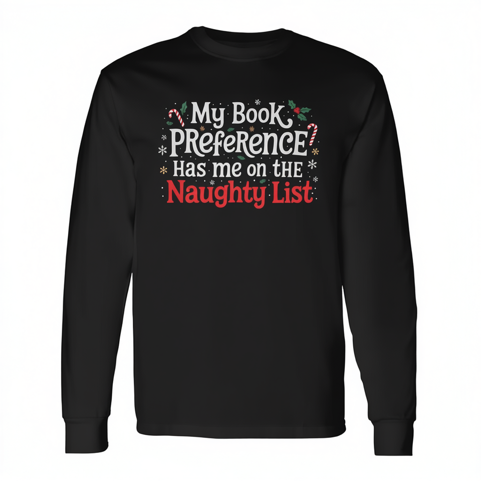 T-shirt à manches longues unisexe pour adulte, col rond, impression numérique, motif « My Book Preference Naughty List Readers Christmas Joke »