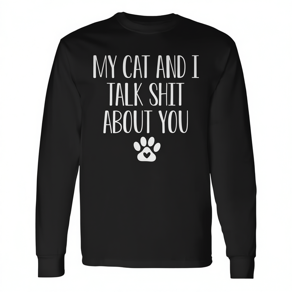T-shirt à manches longues « Mon chat et moi parlons de vous », cadeau pour les amoureux des animaux, nouveauté, imprimé en sérigraphie