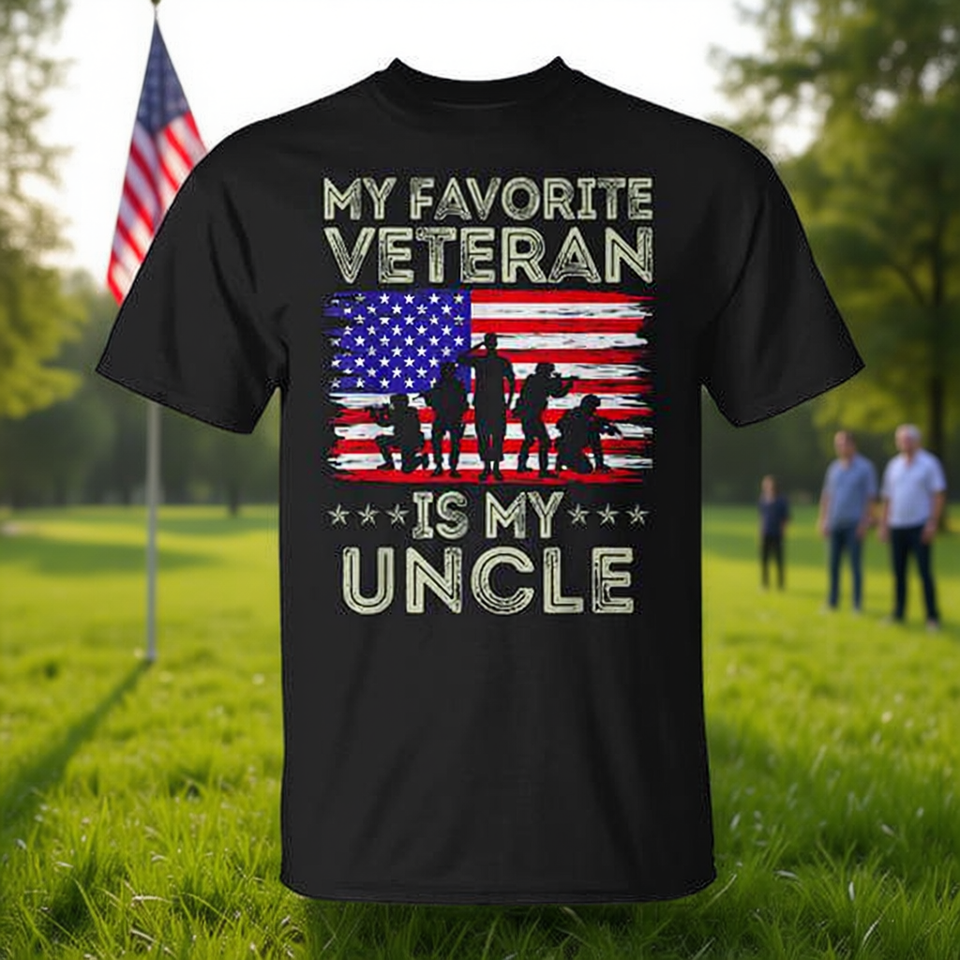 Mon oncle-vétéran préféré porte un t-shirt avec le drapeau américain pour la Journée des Vétérans
