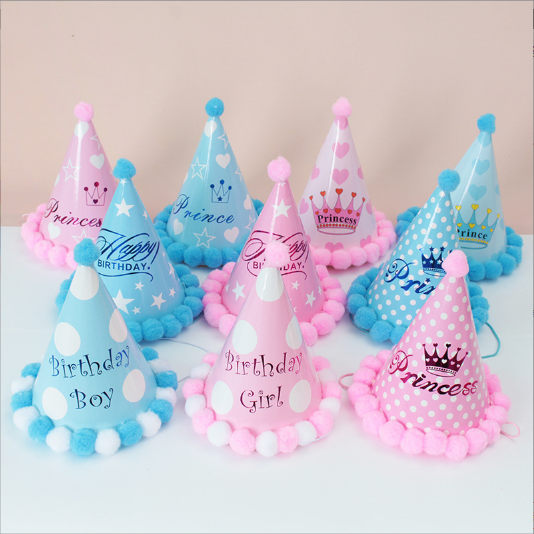 Décorations pour la fête de mon premier anniversaire Chapeau boule en peluche et cône en papier pour filles garçons bébés Accessoires de déguisement amusants