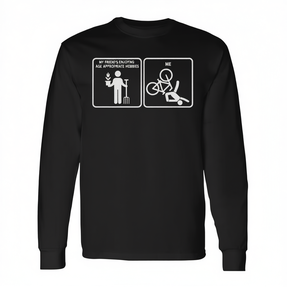 T-shirt à manches longues unisexe à col rond pour adultes, imprimé sérigraphié, modèle chinois, avec motif 'Mes amis se divertissent dans des loisirs adaptés à leur âge'
