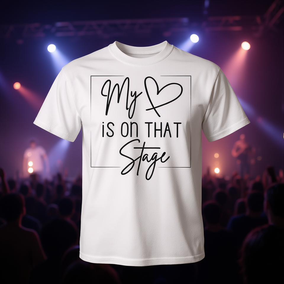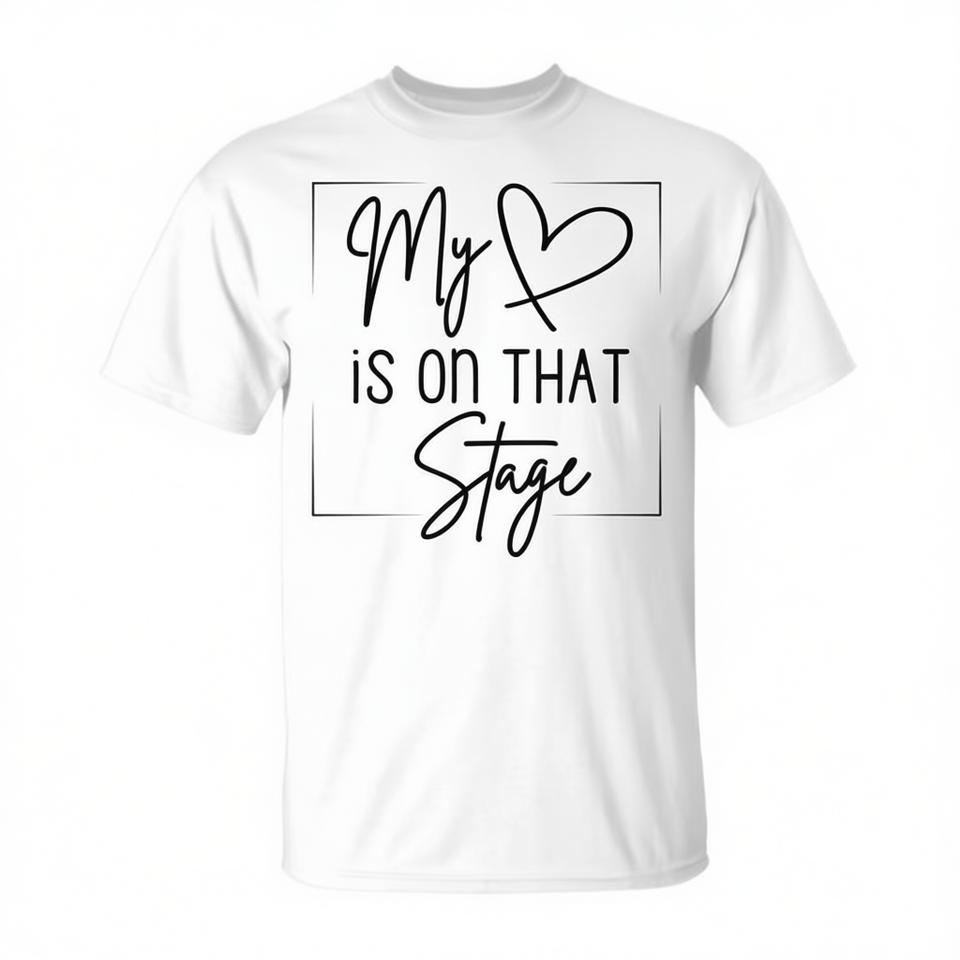 T-shirt My Heart Is On That Stage blanc unisexe pour adulte, col rond, manches courtes, impression numérique