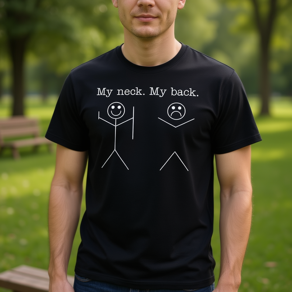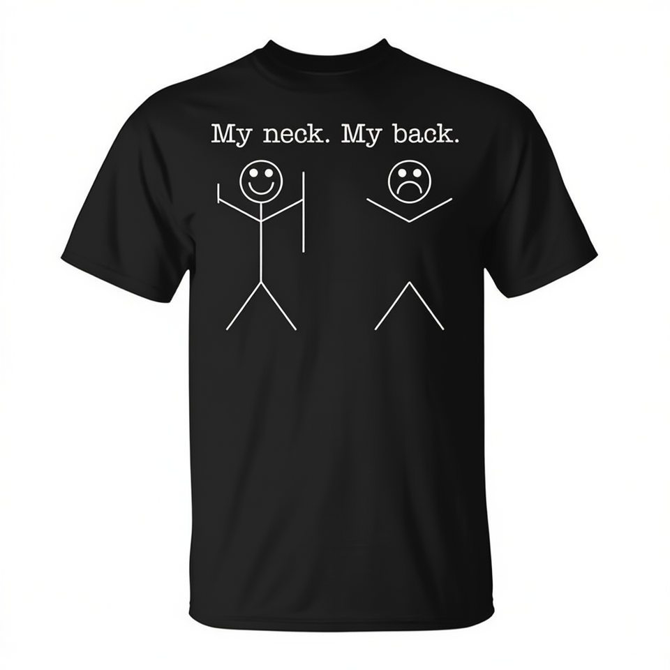 T-shirt humoristique avec dessin de personnage en bâton « Mon cou, mon dos »