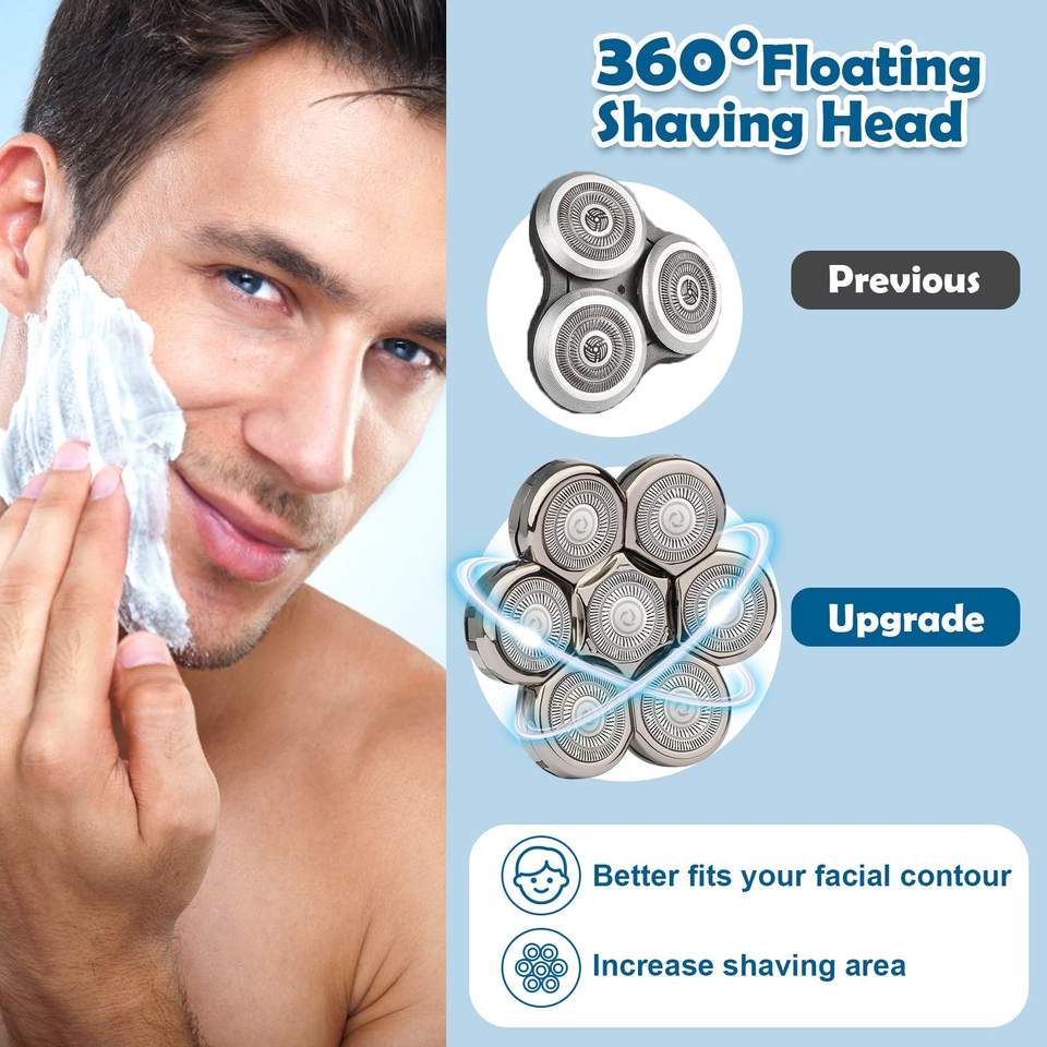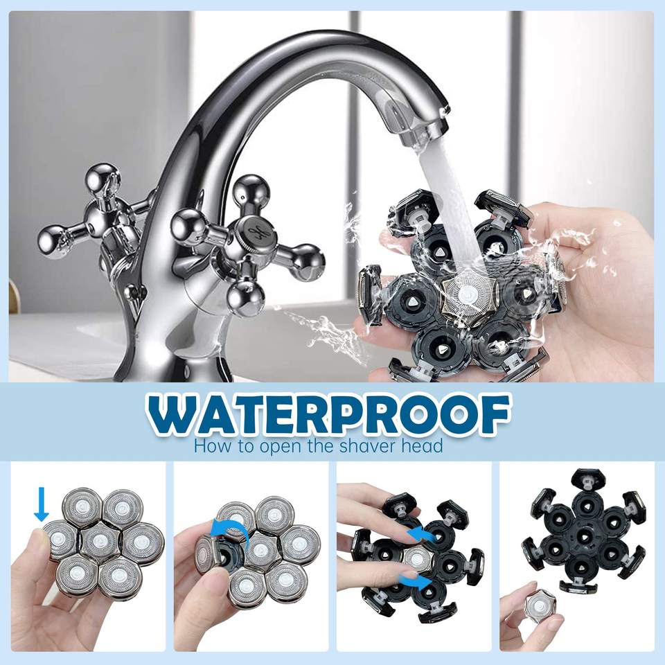 Tondeuse Électrique 3-en-1 My Store à 7 Têtes Rotatives pour Rasoir Chauve, Visage, Barbe et Cheveux, Argent, Métal, pour Hommes