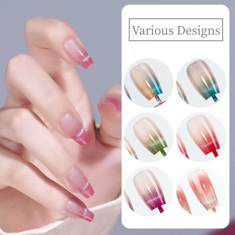 Nom du produit:Faux Ongles à Coller Aura Ombré Œil de Chat