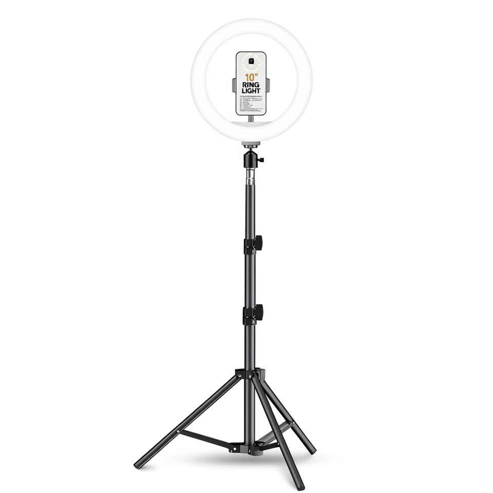 Anneau lumineux Myrva de 10 pouces avec support pour téléphone, température de couleur réglable, alimentation USB, trépied pour éclairage photo et vidéo