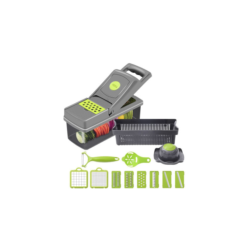 Râpe à légumes manuelle Myrva Grey avec récipient, outil de cuisine en plastique
