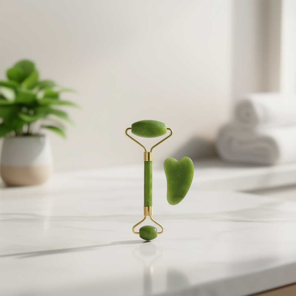 Ensemble rouleau de jade et gua sha