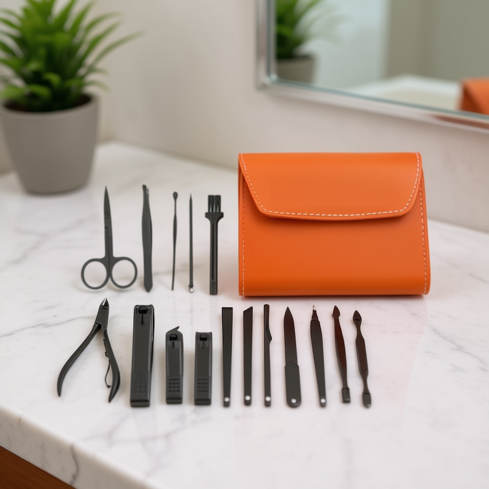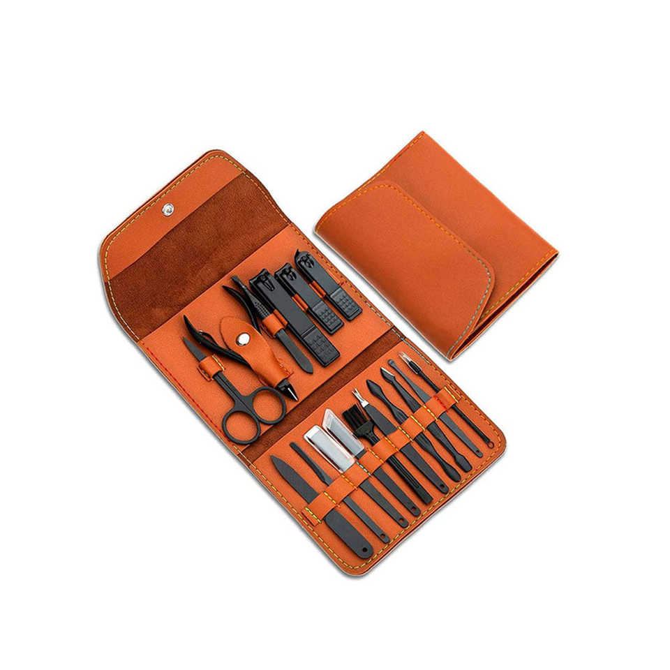 Ensemble de manucure Myrva 16 pièces en acier inoxydable, outils à ongles portables pour adultes, style classique avec emballage en sac