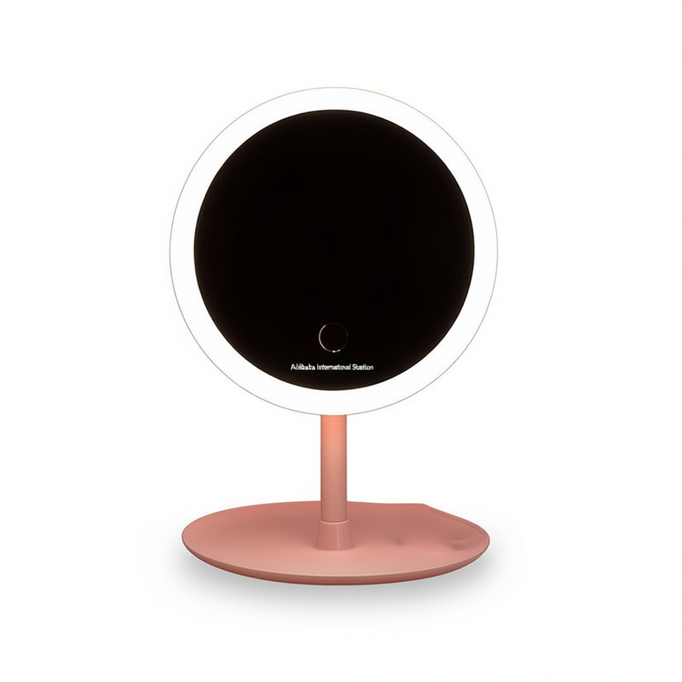 Miroir de maquillage LED rond Myrva avec support de bureau éclairé pour application de produits de beauté