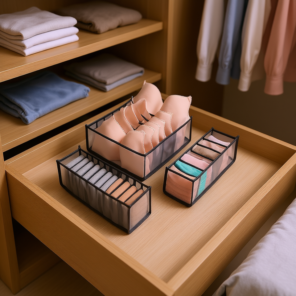 Organisateur de sous-vêtements Myrva, rectangulaire, pliable, en plastique, pour tiroirs, design minimaliste, gain de place, un seul niveau