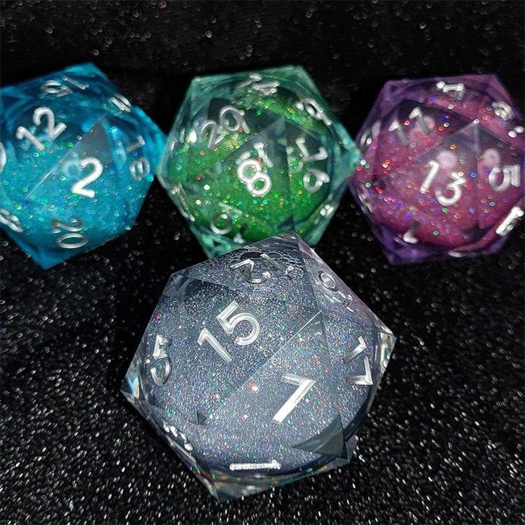 Mystère mouvant sables mouvants noyau liquide résine polyédrique exclusif gros dés d20 feuille transparente personnalisée