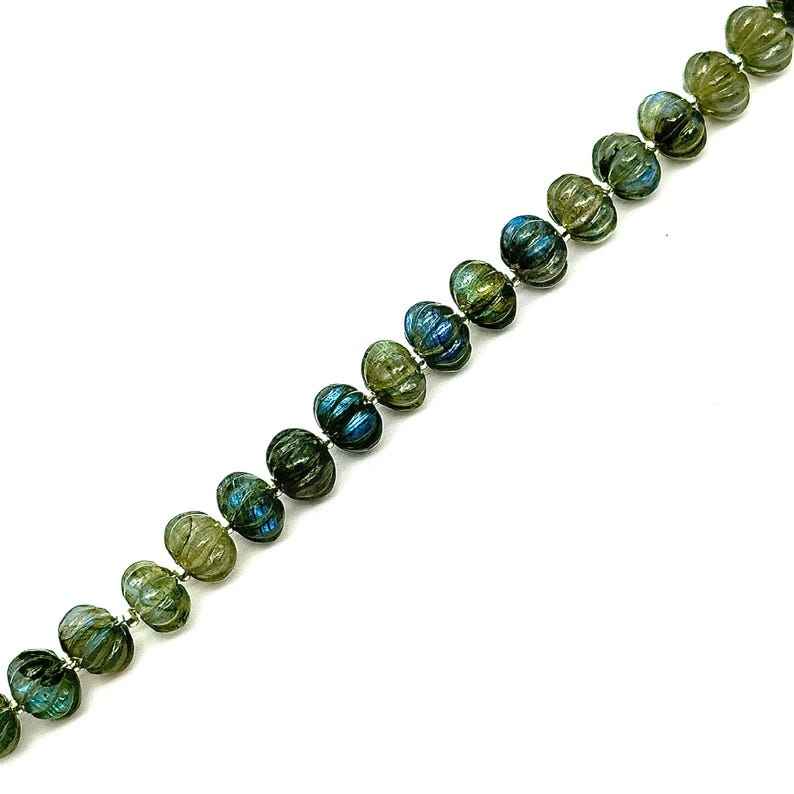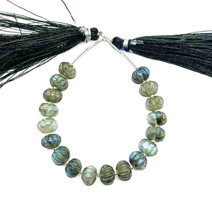 Mots-clés:Mystique Flamme Labradorite Sculpté Citrouille Perles Collier Clignotant