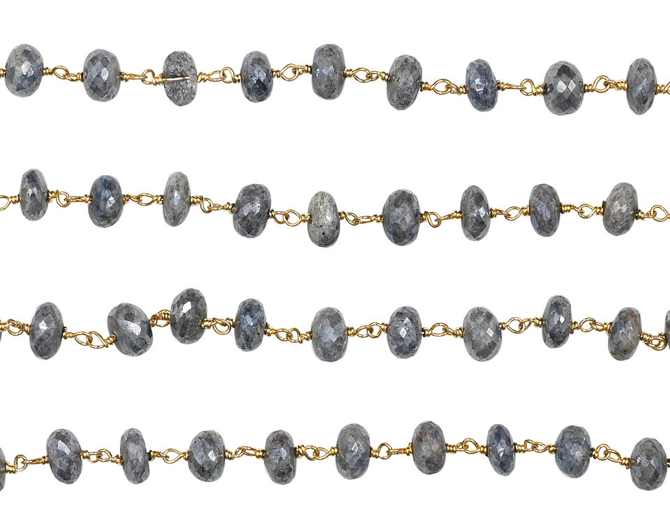 Mystic Silverite Faceted Rondelle Brass Gold Plated Rosary Wire Wrapped Chain Sold by Foot June Birthstone Month and Zodiac Sign