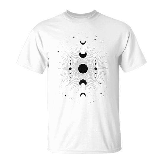 T-shirt unisexe à col rond et manches courtes, motif géométrique minimaliste phases de lune, symbole mystique, promotionnel pour adulte