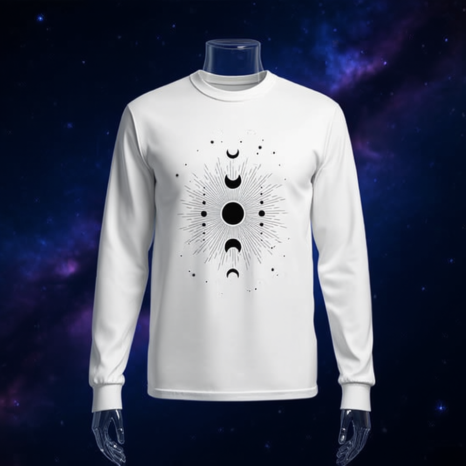 T-shirt à manches longues et débardeur géométrique minimaliste monochromatique avec symboles mystiques des phases lunaires - Produit promotionnel