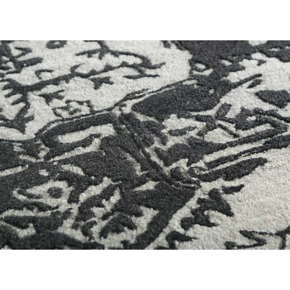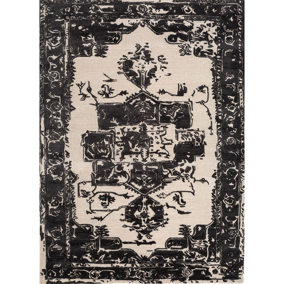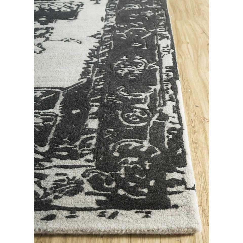 Tapis en laine et viscose tufté à la main Mythos, gris et noir, motif médaillon, tissage plat, pour la maison, le couloir, tapis rectangulaire en jute - Tnq-3205 (Cs-01)
