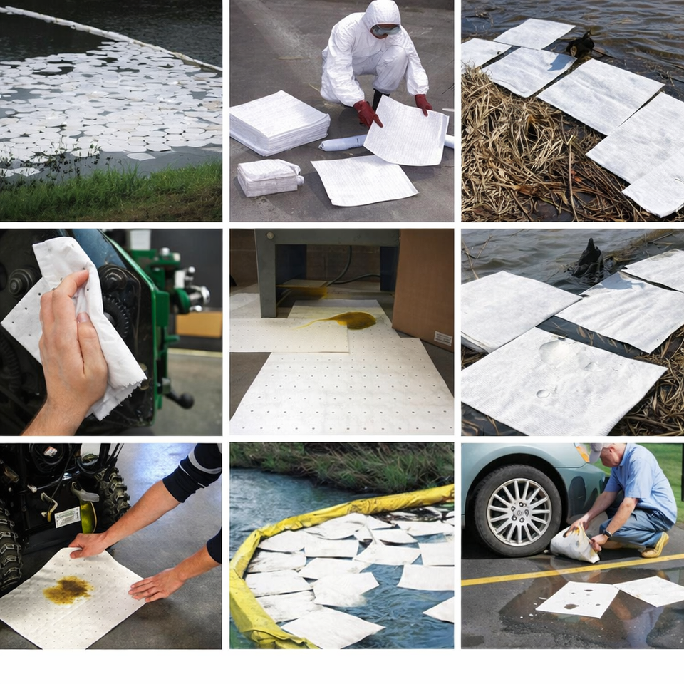 N-FIBER P45 Tampon absorbant d'huile en polypropylène haute absorption 1,6 L pour le contrôle des déversements d'hydrocarbures industriels, hydrophobe, 100 tampons/carton