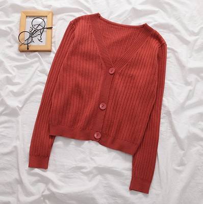N-Women's Cropped Cardigan Sweaters Female With Button Black White Short Sweater V Neck Long Sleeve Women Thin Knitted Cardigan
