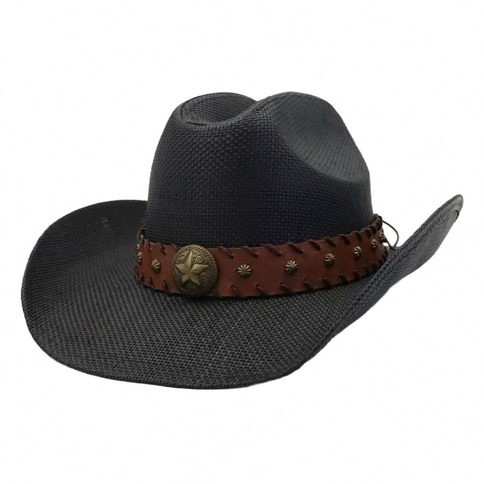 Chapeau de cowboy N49 de bonne qualité en paille de papier fait main avec décoration d'image pour la pêche en plein air, les voyages et l'été