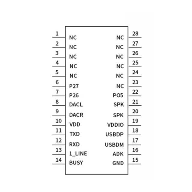 Interface:USB, carte TF, mémoire flash SPI, UART, One-Line, ADKEY, MIC, sortie audio DAC