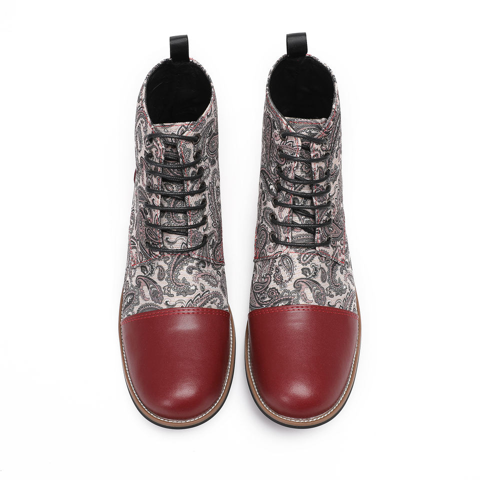 NA661 Bottes de cheville pour hommes à motif Paisley Chaussures en cuir véritable pour hommes Chaussures décontractées de créateur de mode Motif original Bottes derby à lacets