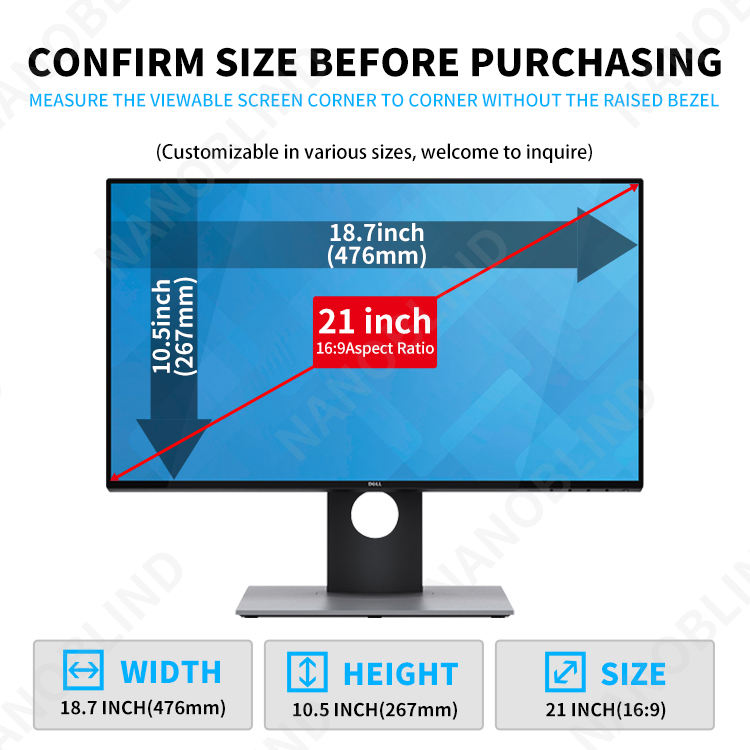 NANOBLIND Filtre de confidentialité 21.5 pouces pour écran d'ordinateur Protecteur d'écran anti-espion 4 voies de confidentialité pour Dell / Asus / Lenovo / Acer