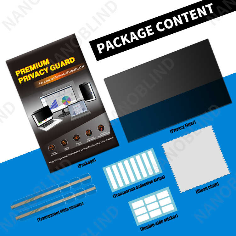 Filtre de confidentialité 1 pièce + sacs OPP + chiffon propre 12*18 cm + instructions + emballage de vente au détail individuel.