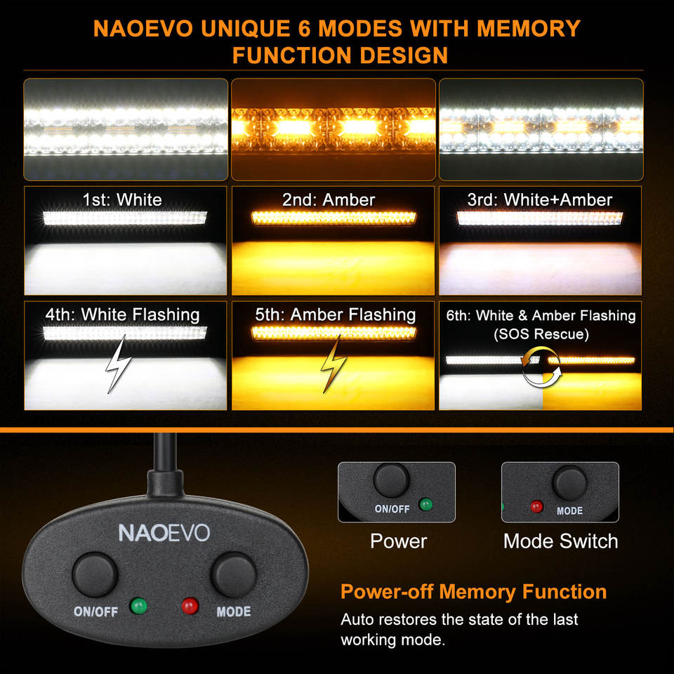 Température de couleur:6000k blanc, 3000k ambre