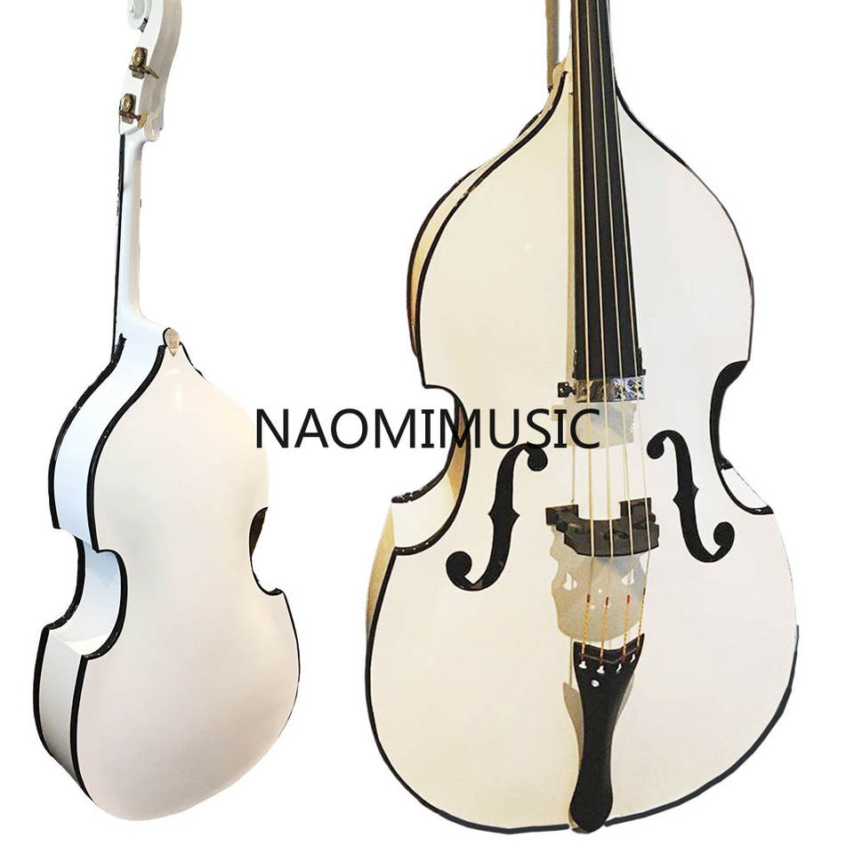 NAOMI Contrebasse acoustique de qualité supérieure, taille 3/4, avec archet, blanche