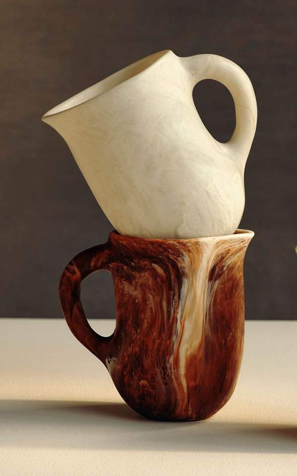 Pichet à eau en résine de polyester au design classique NATUREL Texture en résine avec motif tourbillon Aqua Abricot pour la cuisine Cadeaux de Noël