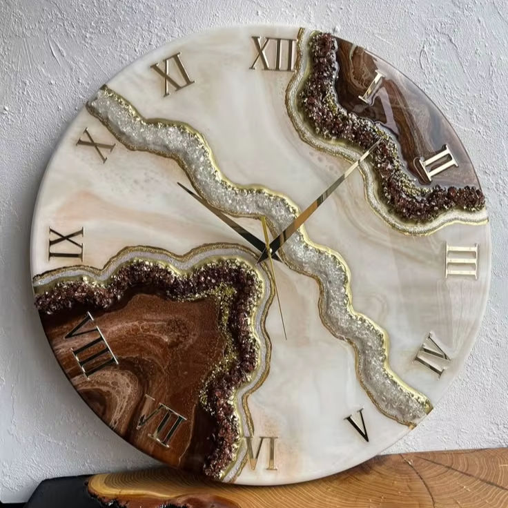 Horloge murale en résine époxy naturelle - Décoration d'intérieur de luxe, fonctionne sur piles, design moderne, taille et forme personnalisables, occasion de mariage