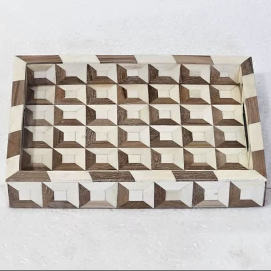 PLATEAU NATUREL Plateau de service fait à la main Incrustation d'os de luxe Ramadan Petit déjeuner Fruits Café Thé Plateau décoratif à bas
