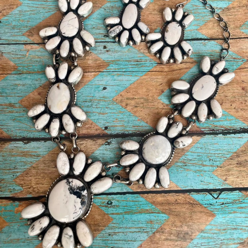 Ensemble collier et boucles d'oreilles en argent sterling NAVAJO avec buffle blanc pour femmes, cadeau pour elle