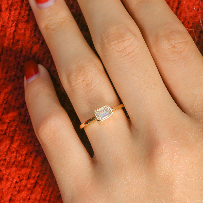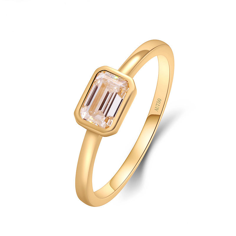 NAYAN Nouveau Design Or Véritable 18K avec Moissanites VVS Or Jaune Pur 18K 4X6mm .6CT Bague en diamant Moissanite Marquise taille émeraude