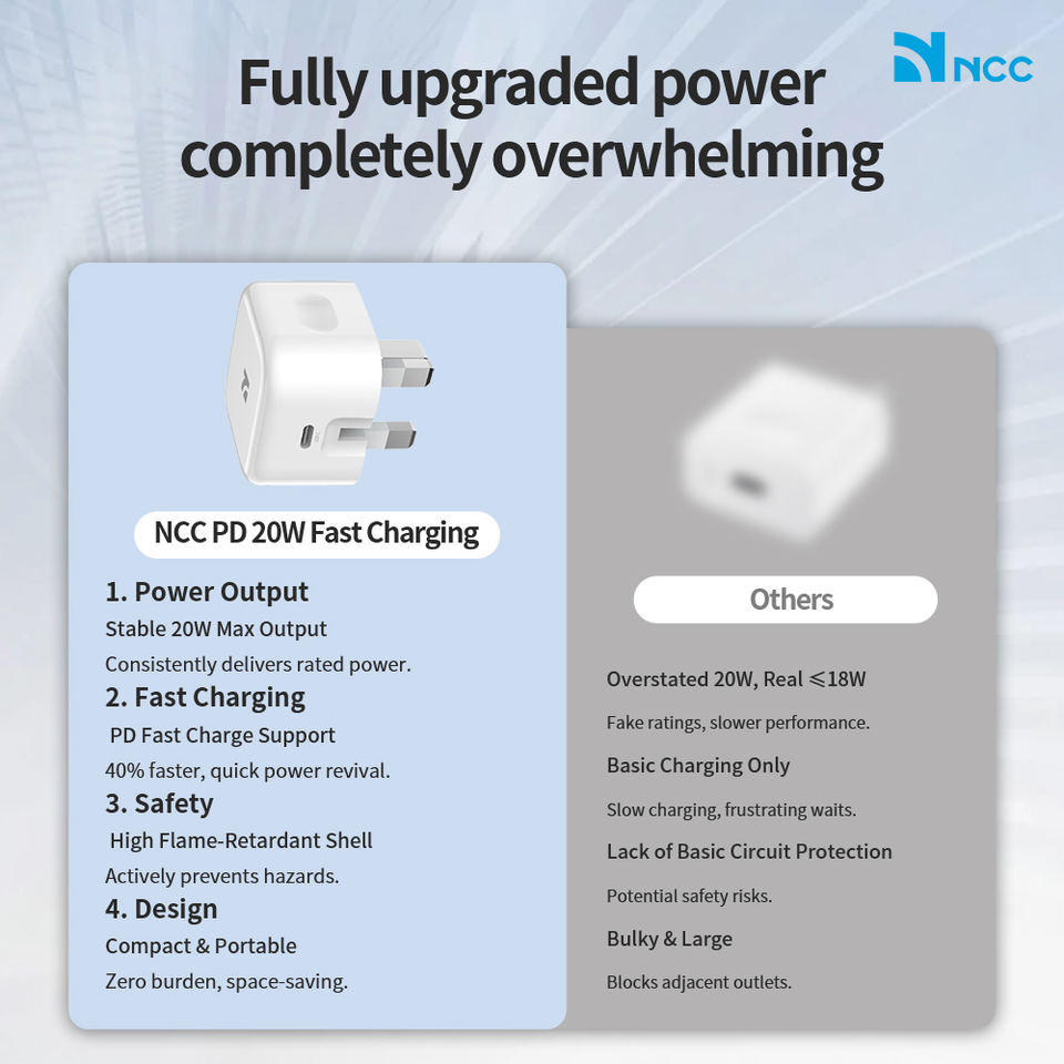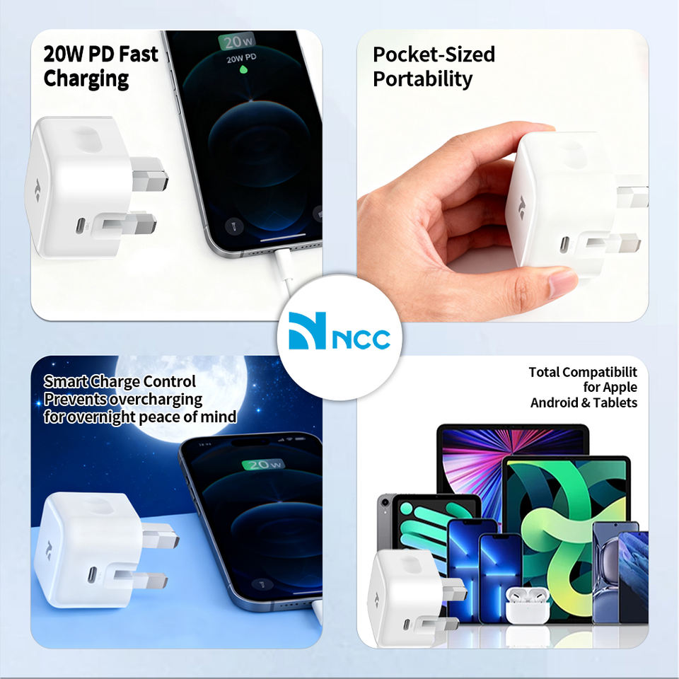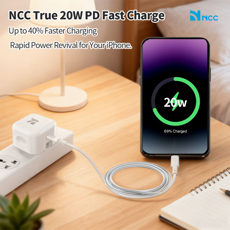 NCC 20W USB-C Charger CD-0501 EU PD Fast Charging, Compact and Safe, White