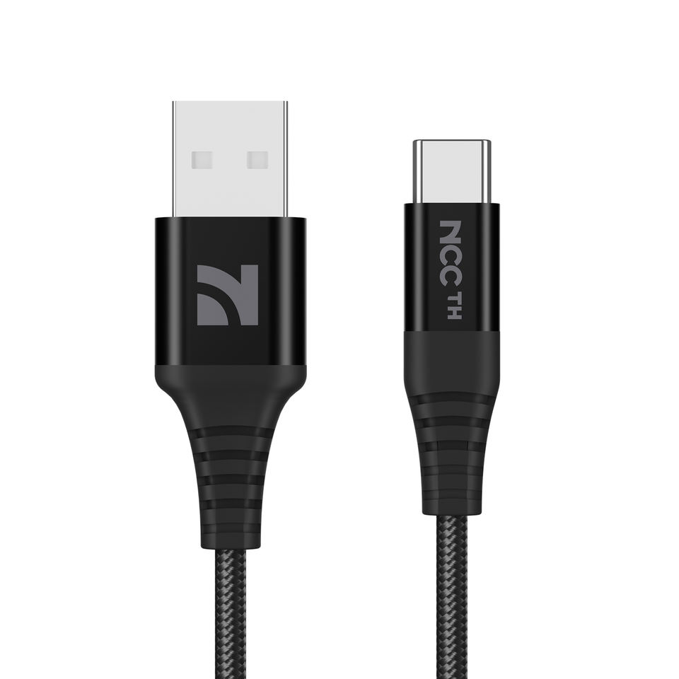Câble NCC Super Value Series XC-1301 USB vers USB-C 2A 1M, charge rapide, câble tressé durable et connecteurs en aluminium (noir)