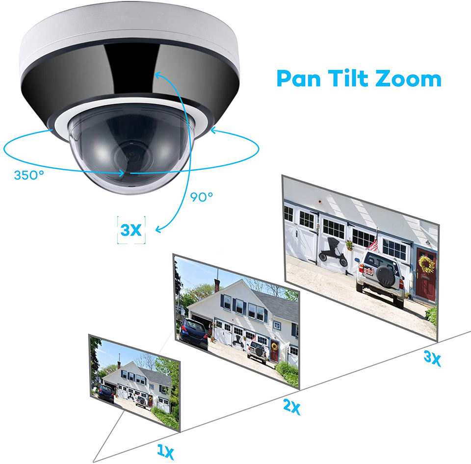 Caméra IP dôme PTZ miniature 8MP conforme à la norme NDAA, PoE, extérieure, avec zoom optique 3x, objectif varifocal motorisé 2,8-8 mm, audio bidirectionnel