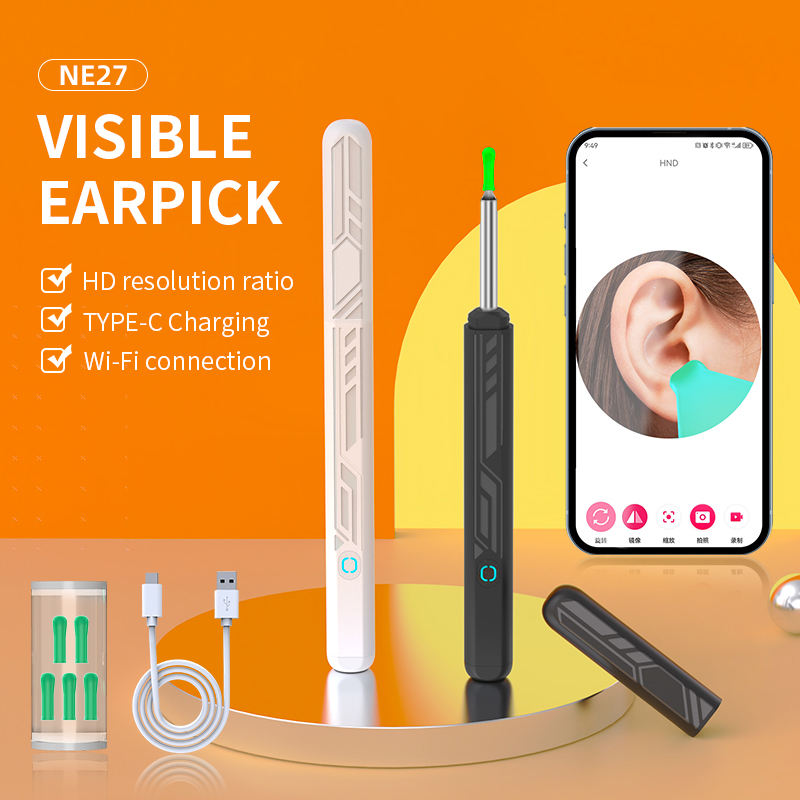 NE27 Smart Visual Ear Cleanser 6 LED Lights Wireless Otoscope Ear Camera Outil d'élimination du cérumen avec capuchon de protection