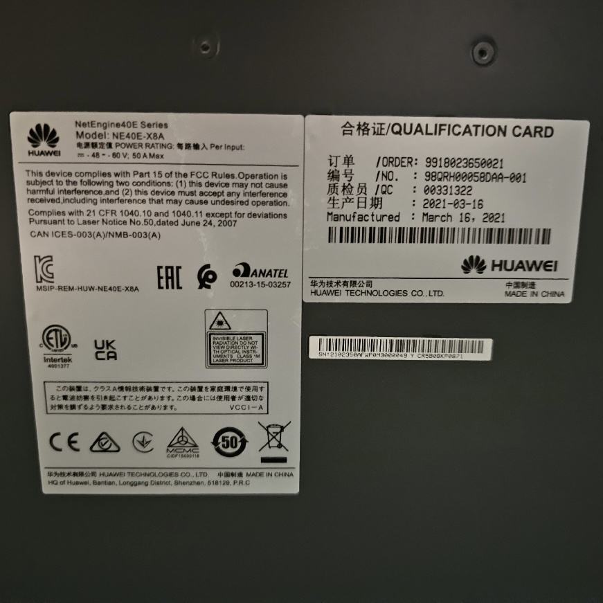 Configuration de base du routeur d'entreprise NE40E-X8A 2 SRU (A17) 2 SFU (480-N)-02354FQN-001 02354FQP-001 CR5P08ABSA76 CR5P08ABSD76