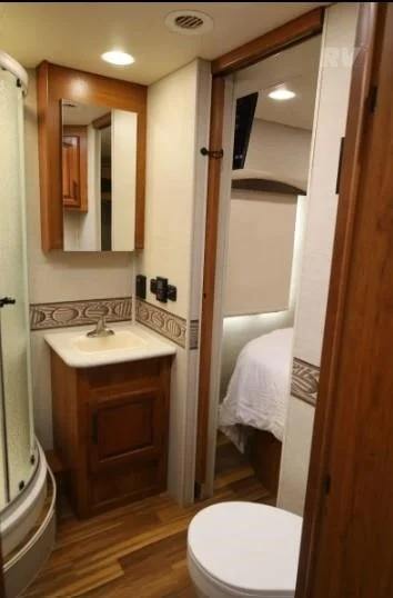 Camping-car d'occasion en excellent état J-A-Y-C-O G-R-E-Y RV 31DS modèle 2017 haute performance, 36 pieds de long, charge utile de 2000 kg, couleur foncée, à vendre