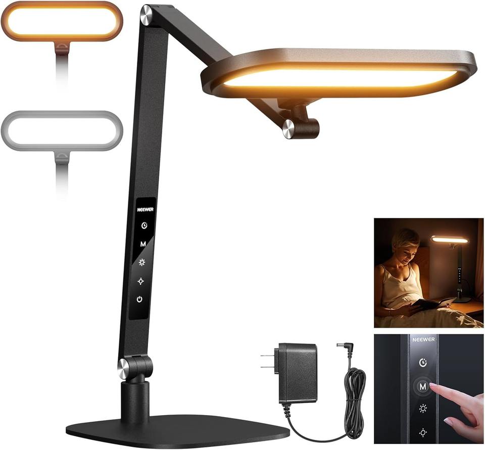NEEWER FR16 Basics 16W LED Desk Lamp for Video Conference Reading Lighting, Foldable Double-Sided Dimmable Touch Desk Ring Light