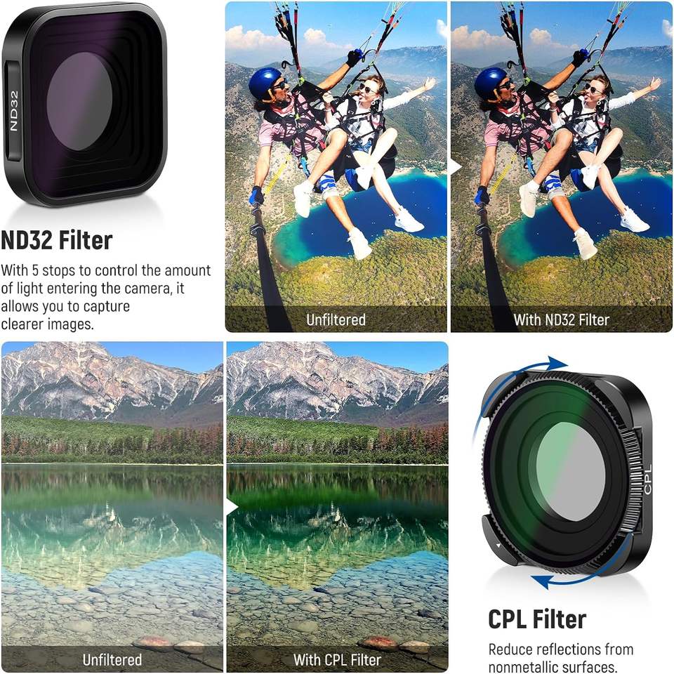 NEEWER Ensemble de filtres ND Compatible avec GoPro Hero 12 11 10 9 Black Lot de 6 accessoires pour objectif de caméra d'action Kit de filtres à effets