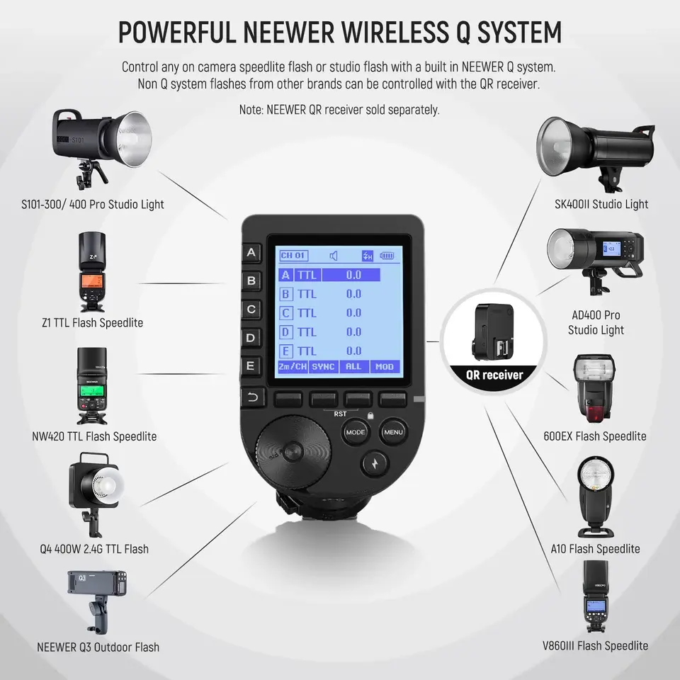 NEEWER QPRO TTL Wireless Trigger Customized Functions for Cameras Compatible Models Q4 Q3 Z2 Z1 Z760 NW760 S101-300W Pro/400W