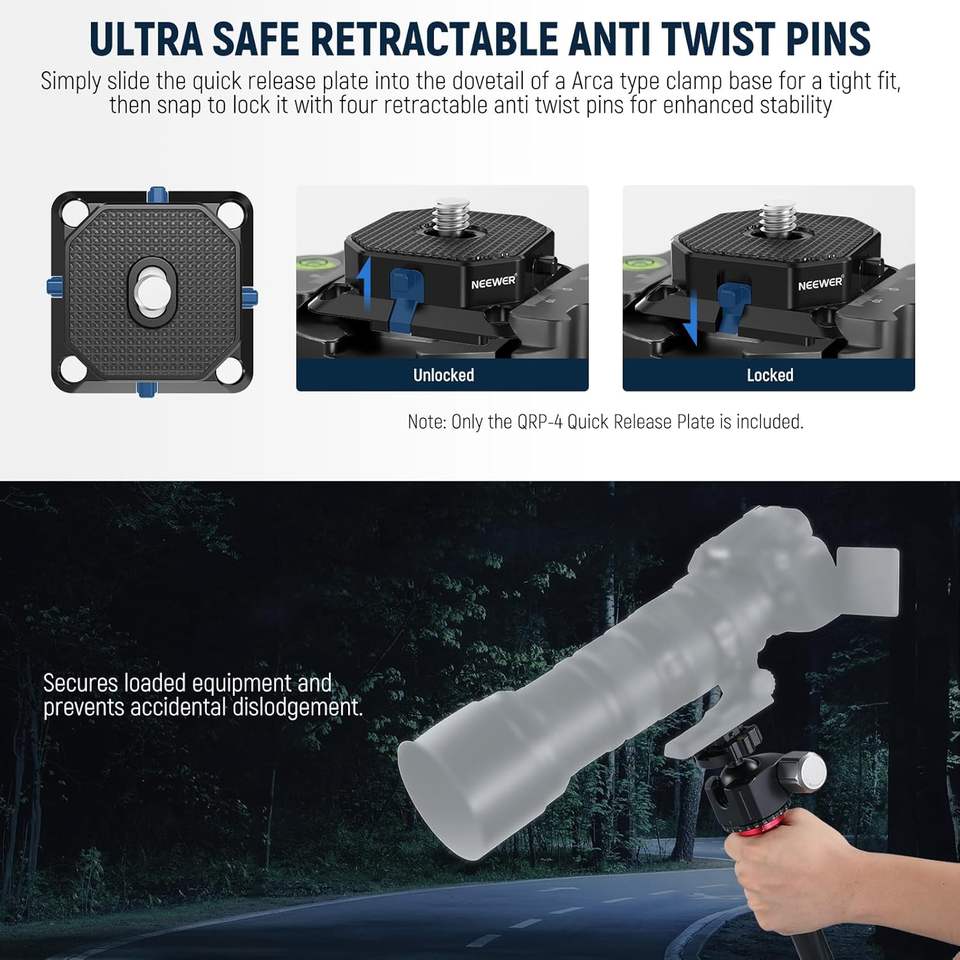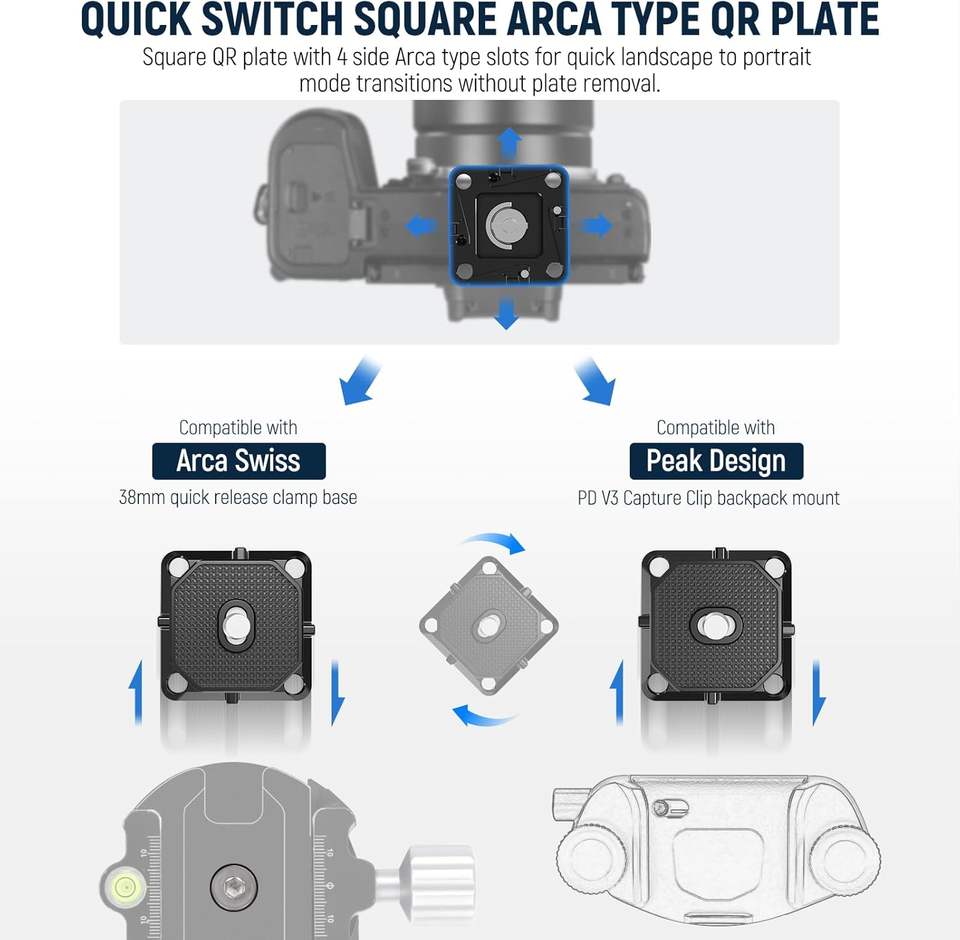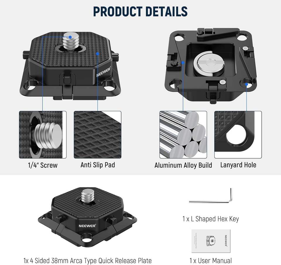 NEEWER Plaque de fixation rapide 38mm carrée Type Arca QR Plaque de montage pour appareil photo Compatible avec Peak Design Capture V3 Camera Clip