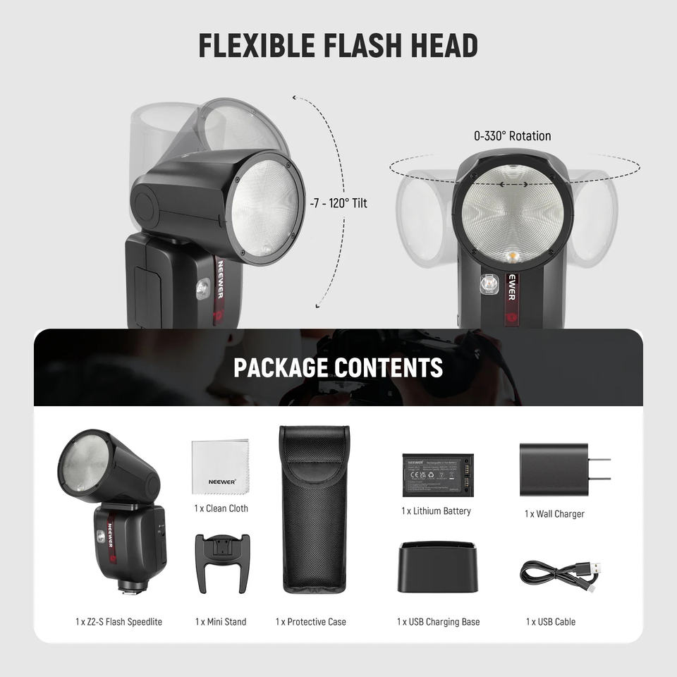 NEEWER Z2-S Tête Ronde Flash Speedlite TTL pour Éclairage Photographique
