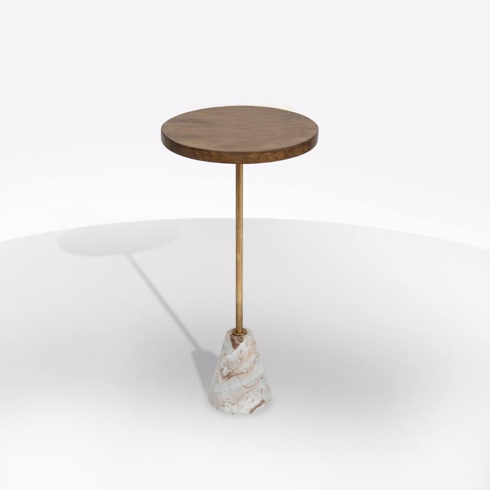 TABLE NEITH, 35,5 x 69,5 cm, OR ET MANGUE, AVEC BASE EN MARBRE