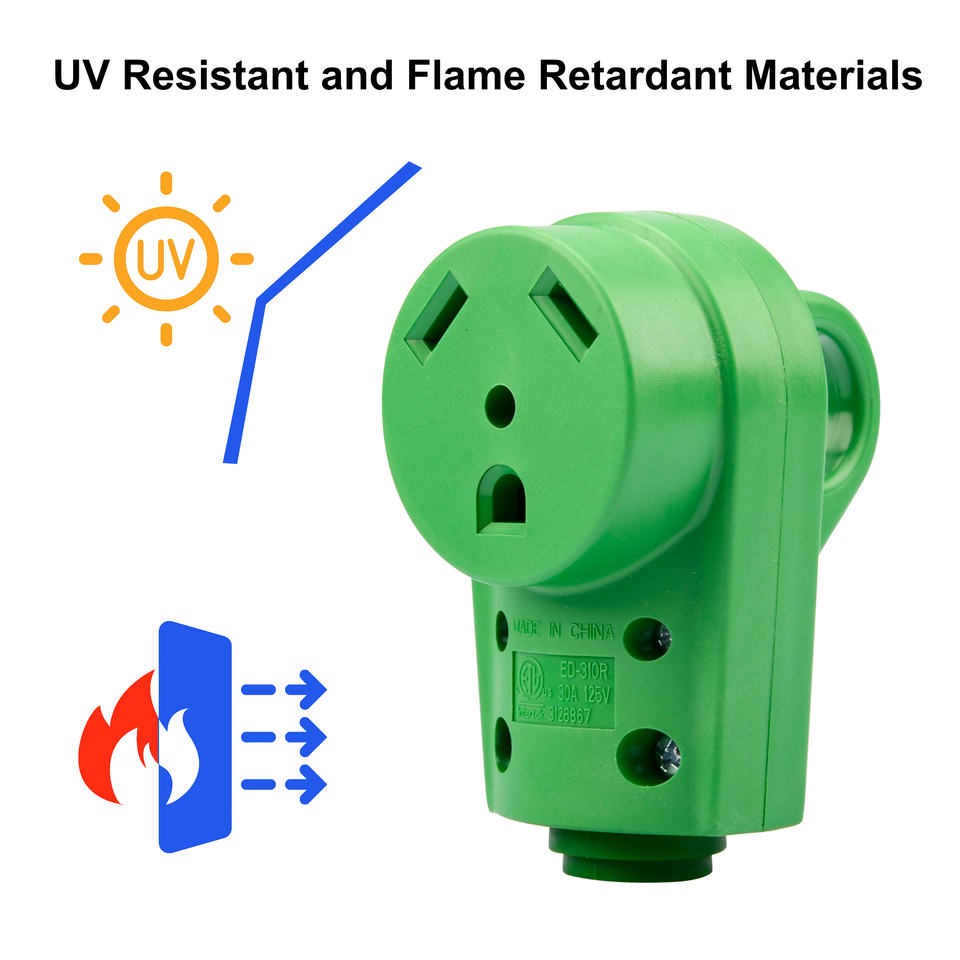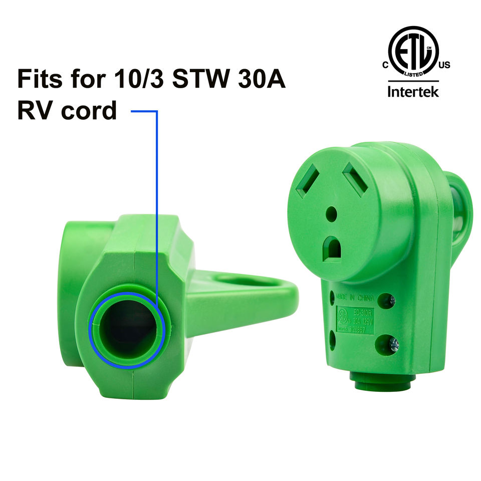 NEMA TT-30R 125V 30A RV Cordon d'alimentation femelle de remplacement Fiche de remplacement ETL Listed Green RV Cord End Replacement